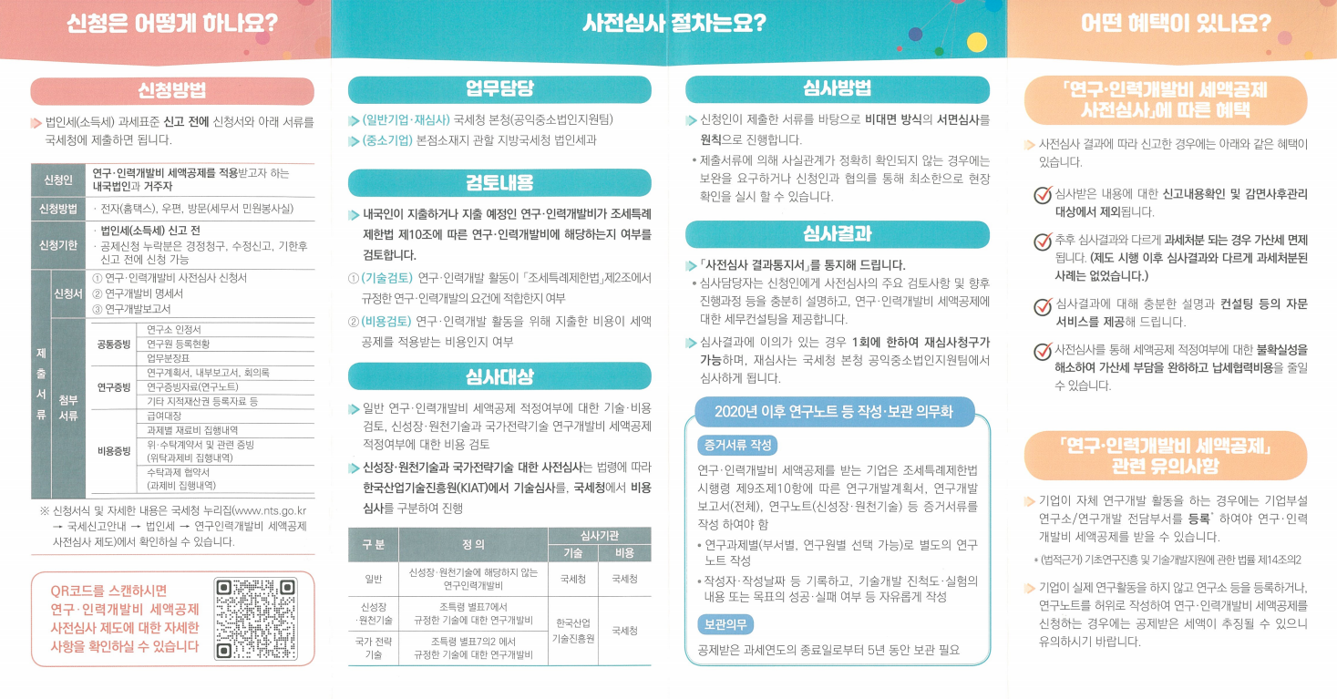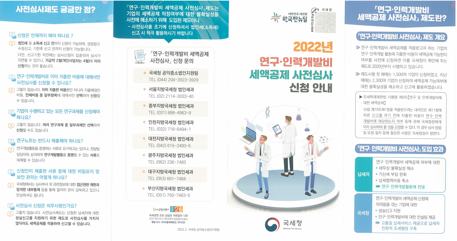 추가로 연구·인력개발비 세액공제 사전심사도 신청을 받는다고 합니다. 참고하시면 좋겠네요.