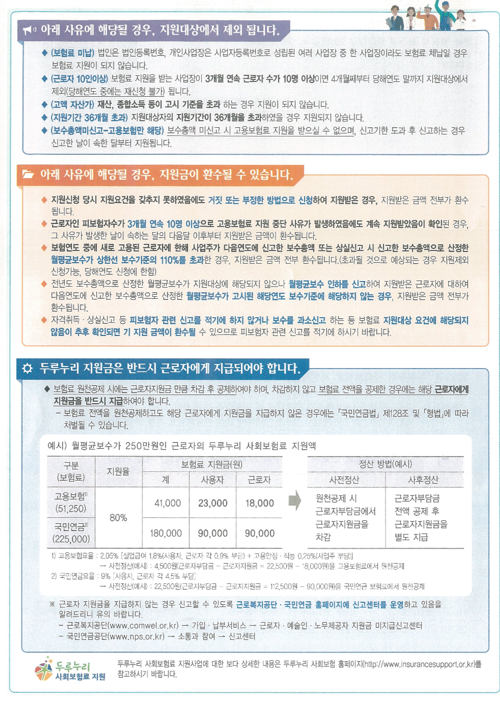 지원대상제외사유, 지원금 환수사유 등을 잘 알아보시고 나중에 억울함이 없도록 주의하셔야 합니다!