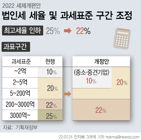 이번에 법인세율이 각 구간별로 1%가 줄었죠.