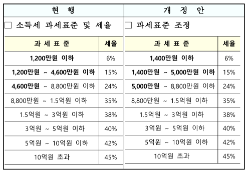 2023년부터 소득세와, 법인세 과세표준 / 세율이 조금 변경되었는데요,