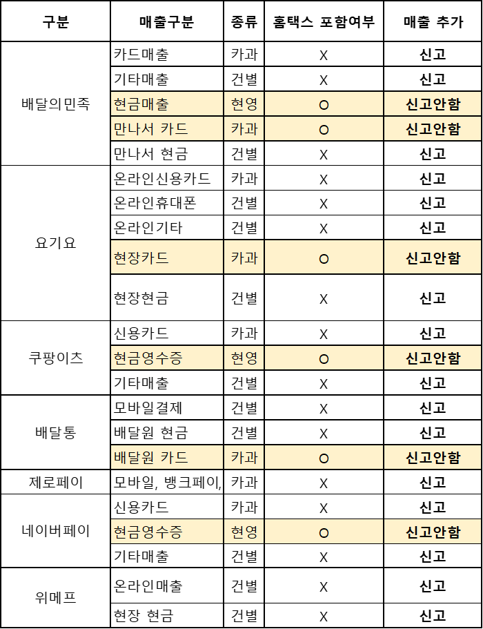 배달앱들에 대해서는 국세청 매출에 포함되는게 있고 안되는게 있습니다.