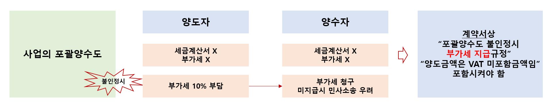 나중에 세무당국에 의해 포괄양수도가 부인되면 부가세 10%를 부담하게 되고, 해당 부가세에 대해서 다툼이 발생하는 것이죠.