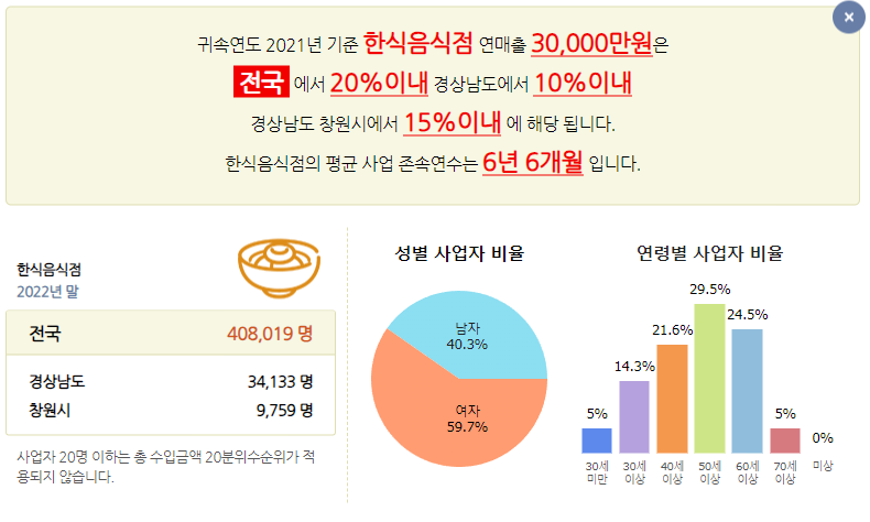 반면 한식음식점은 3억이상 매출을 올리는 분들이 더 많으시다는 거죠.
