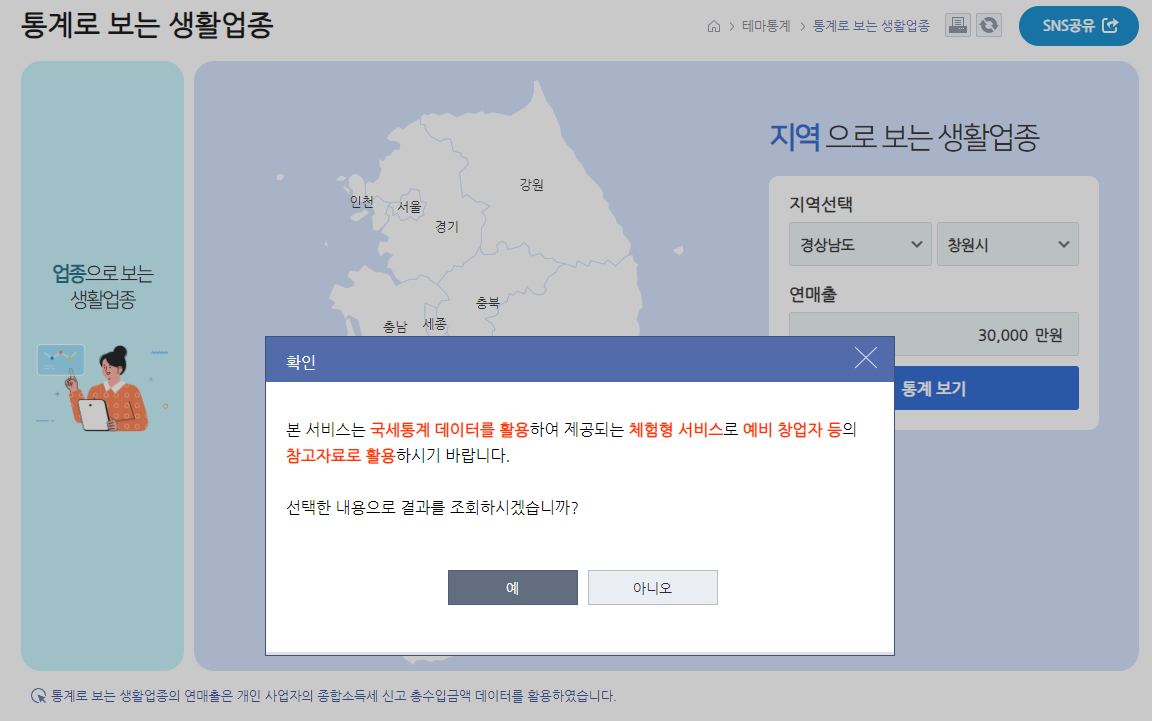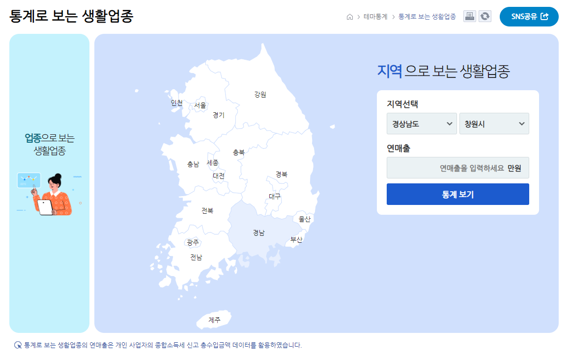 국세통계포털 > 테마통계 > 통계로 보는 생활업종