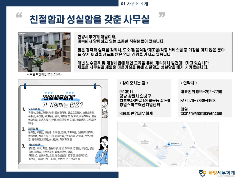 | [창원세무사/마산세무사] 한양세무회계사무소 사무실 이사했습니다!_한양세무회계사무소 (1) | 2024.02.09 |