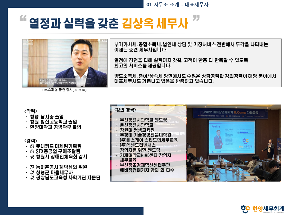 이번에 새로운 사무실로 이사한 것에 맞춰, 한양세무회계사무소 소개자료도
