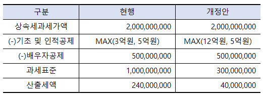 현행 기준으로는 상속세가 2억 4천만 원이 나올 수 있는 상황이 4천만 원으로 줄어드는