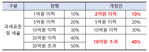 2) 상속·증여세율 및 과세표준 조정