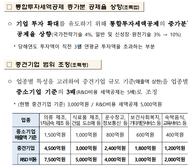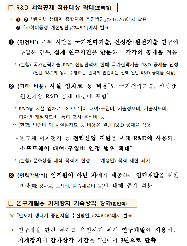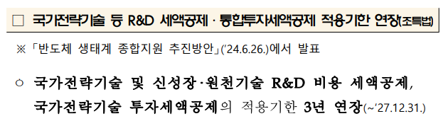 1. 국가전략기술 등 R&D 세액공제·통합투자세액공제 적용기한 연장, 점감구조 도입