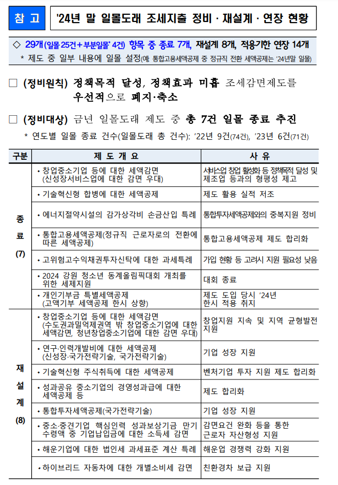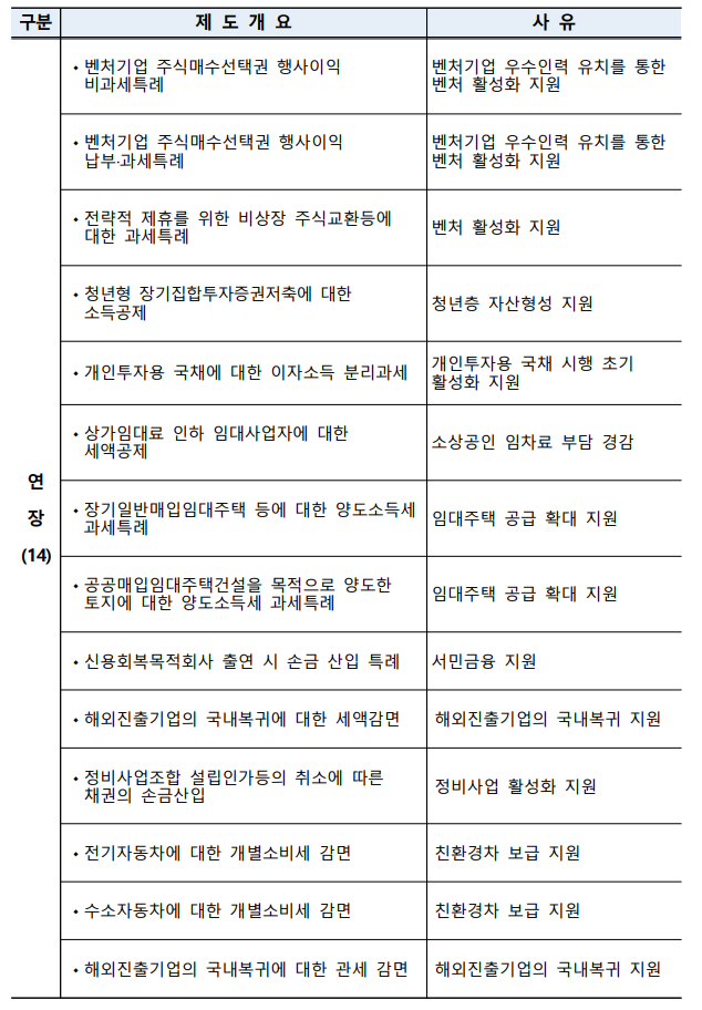 10. 적용기한이 도래한 조세특례 적용 종료