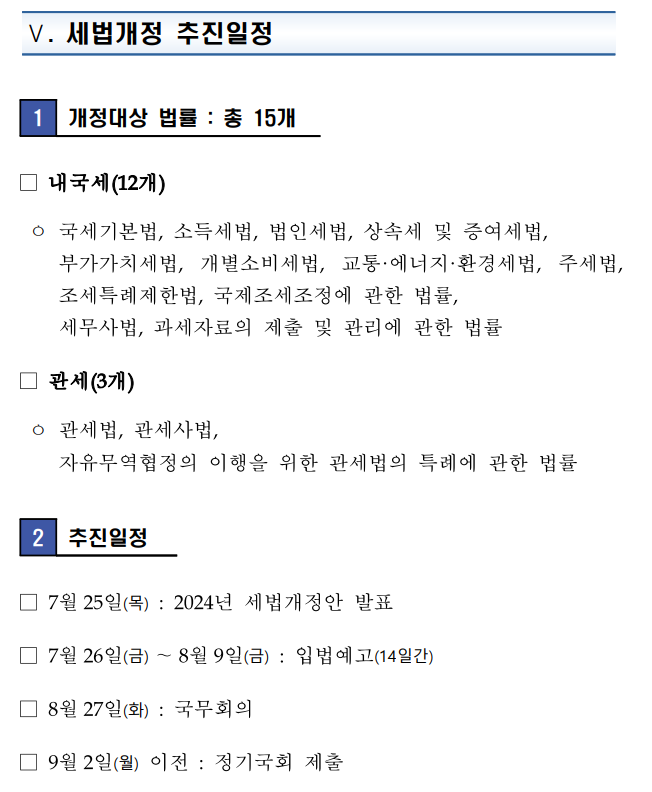 2025년 주요 세법개정안