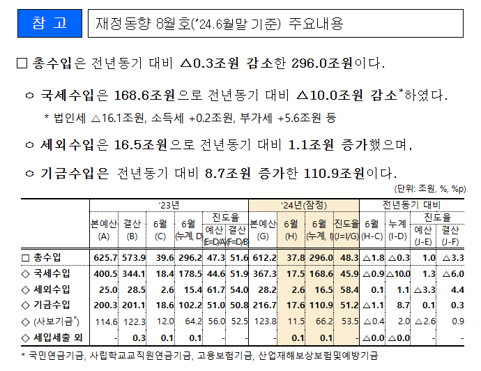(세종=연합뉴스) 박재현 기자 = 법인세 수입 감소와 정부 지출 증가의 영향으로 6월까지 나라살림 적자 폭이 100조원을 넘어선 것으로 나타났다...