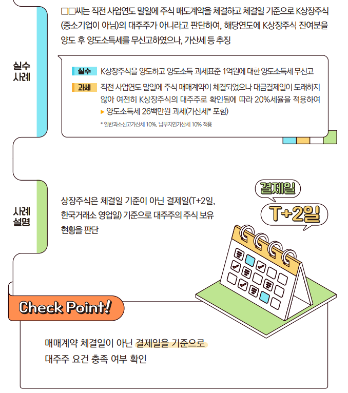 ① 주식 매매게약 체결일과 결제일을 혼동하여 대주주 요건을 잘못 판단한 사례
