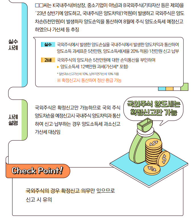 ③ 예정신고 기간에 국외주식의 양도차손을 국내주식과 통산하여 신고한 사례