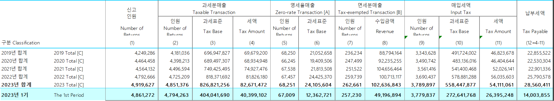 이번에는 통계시리즈, 2023년 부가세 납부현황에 대해서 살펴보고자 합니다