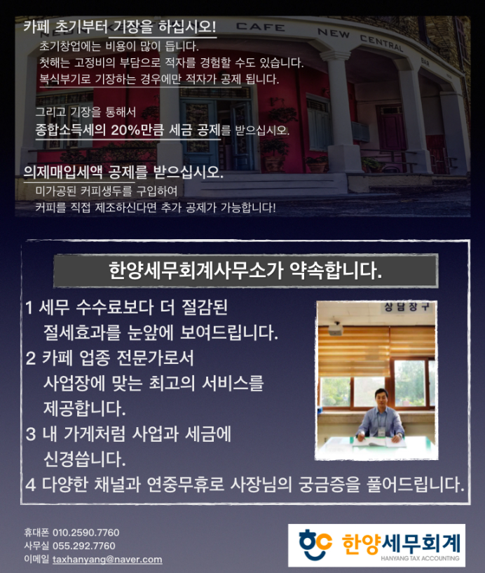 오늘은 카페업을 하시는 분들께 안내를 드렸던 2018년 초창기 안내문을 보니까, 저희 김상옥 세무사님과 함께 개업초반에 어떤 일을 할까 고민하던 시절이 생각납니다.