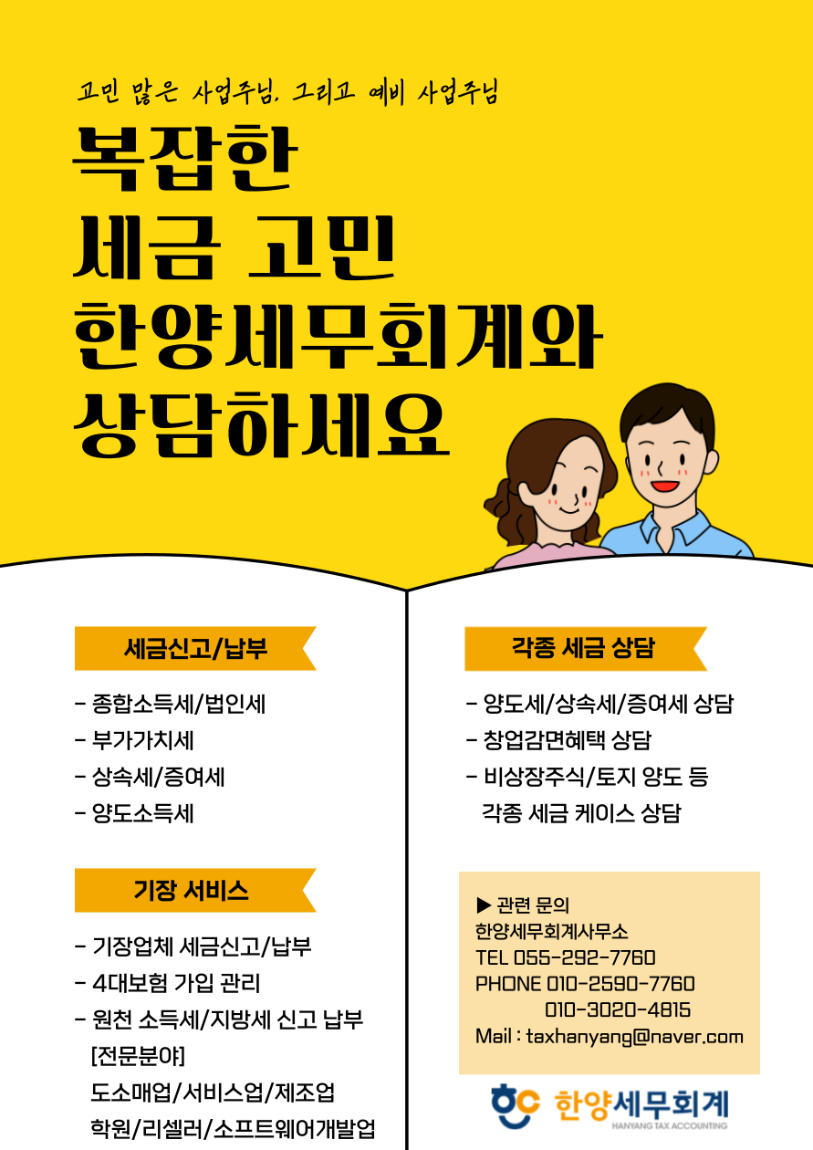 복잡한 세금고민은 한양세무회계와 함께 헤쳐나가는 것이 어떨까요?