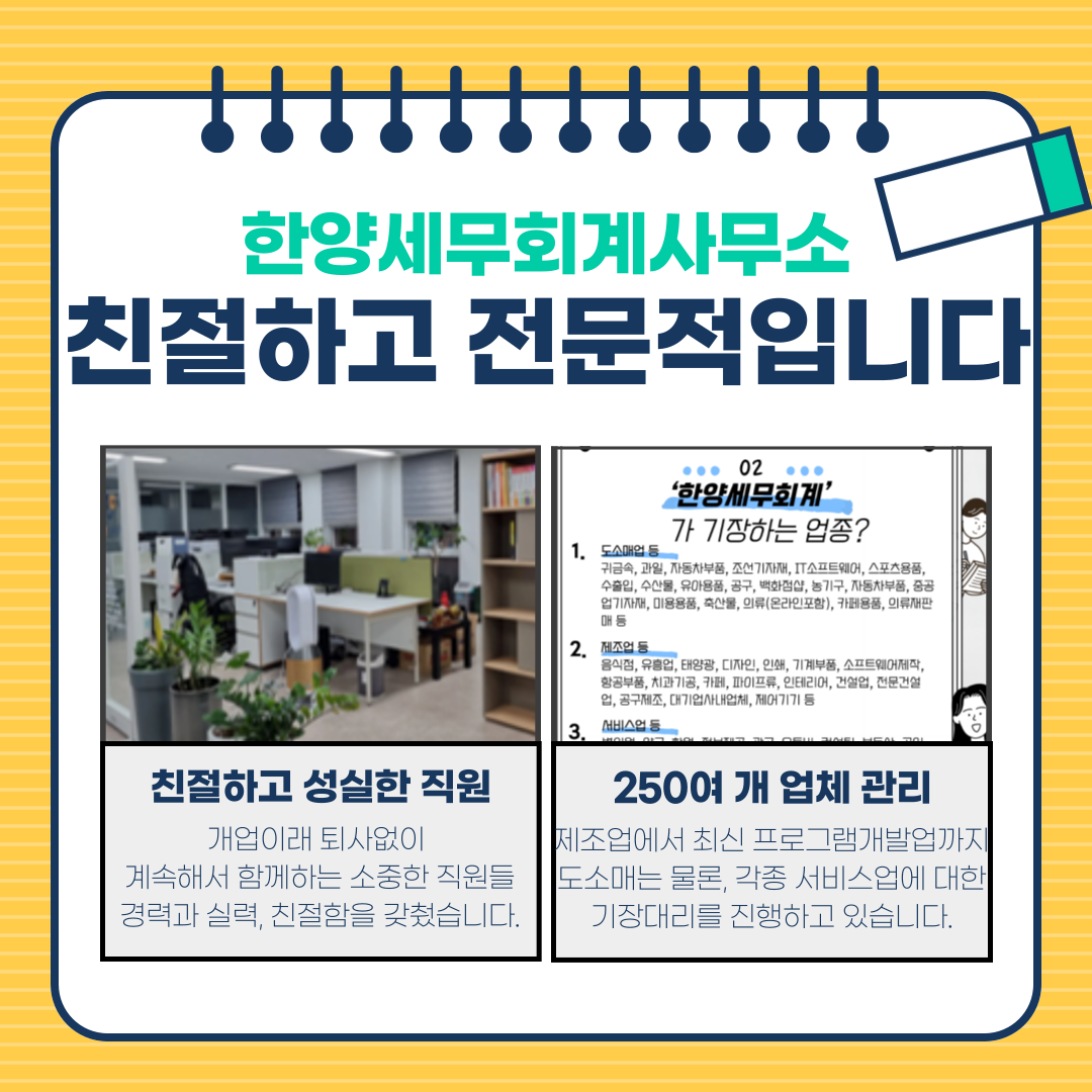 | 복잡한 세금 고민, 한양세무회계와 상담하세요 _한양세무회계사무소 [창원세무사 / 김해세무사] (4) | 2024.11.24 |