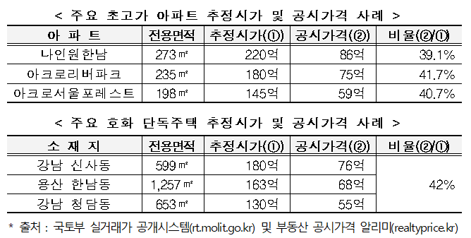 국세청은 초고가 아파트 및 호화 단독주택 등이
