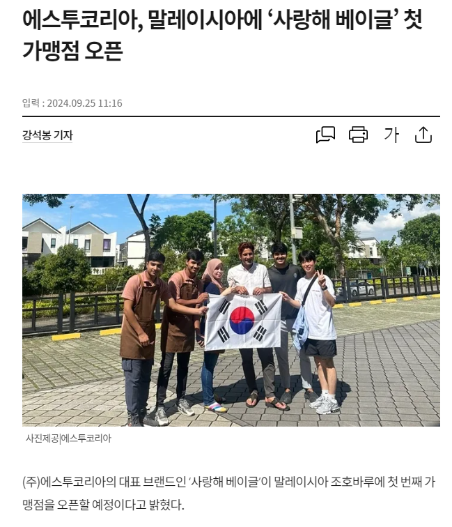 에스투코리아, 말레이시아에 ‘사랑해 베이글’ 첫 가맹점 오픈
