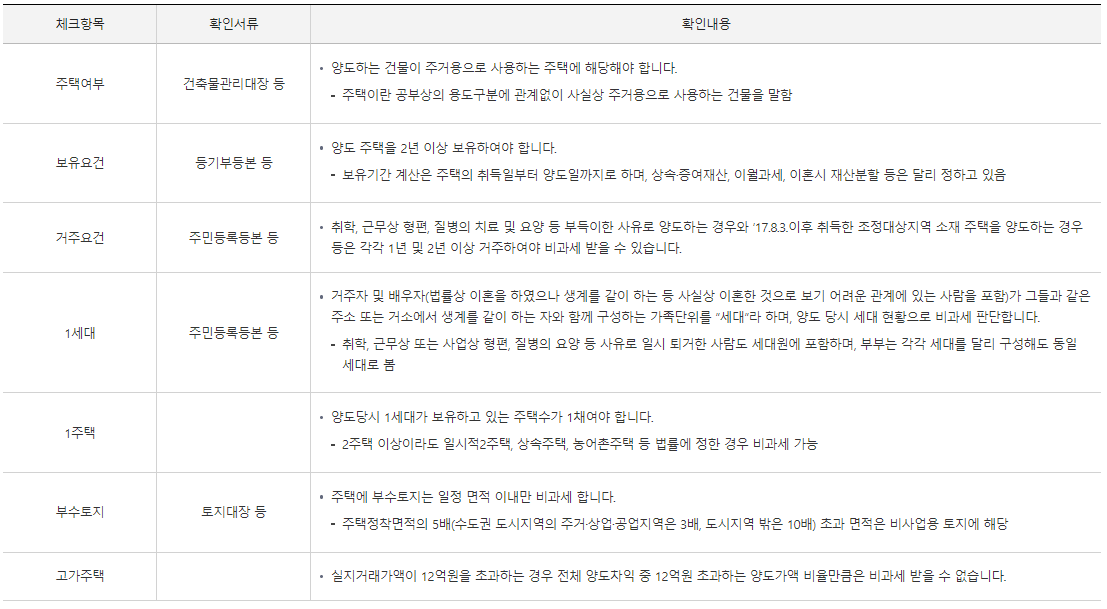 1세대 1주택 비과세 점검표