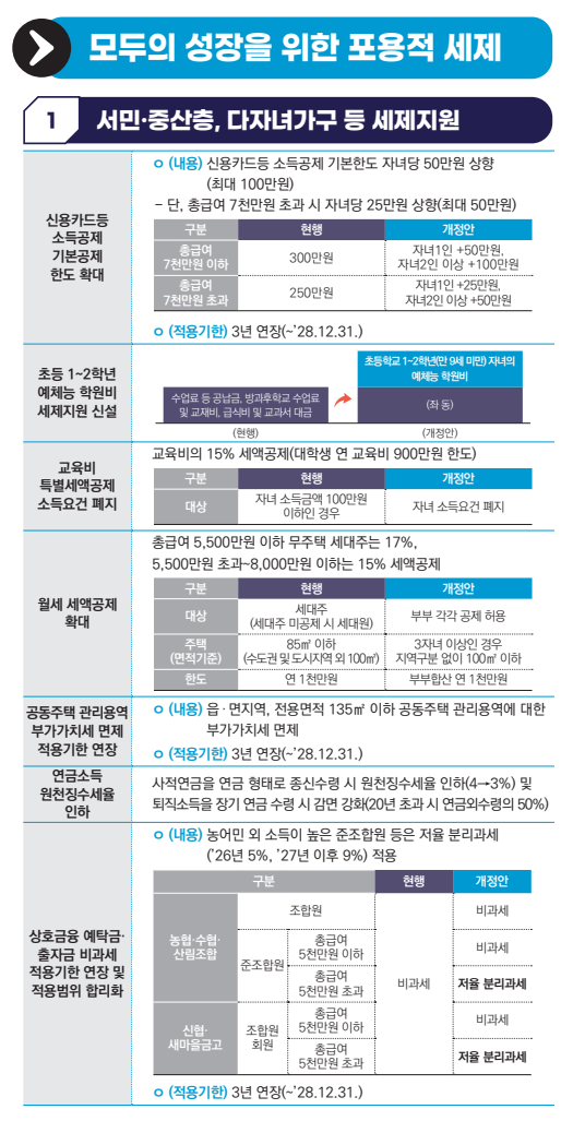 다음은 기획재정부의 '2025년 세제개편안' 주요 내용을 항목별로 정리한 것입니다.