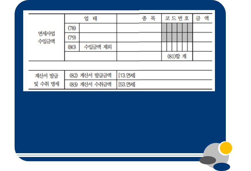 (7) 신용카드매출전표등발행금액집계표 면세분 : 18. 카면, 23. 현면