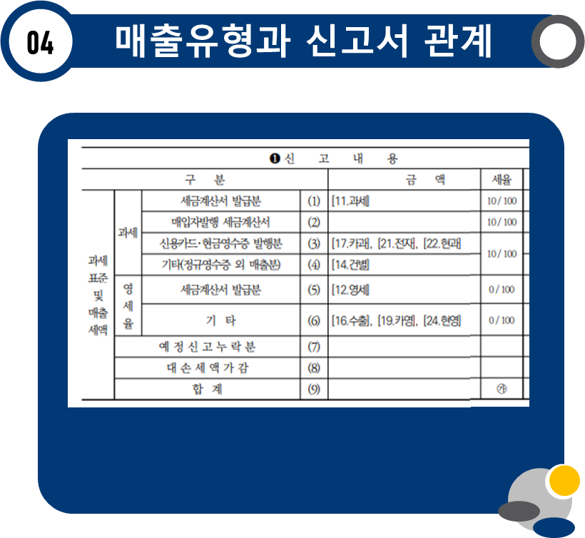 (6) 신용카드매출전표등발행금액집계표 과세분 : 17. 카과, 19. 카영, 22. 현과, 24. 현영