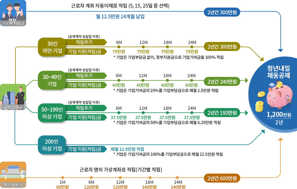 아무래도 중소기업의 환경에 불만족하는 청년이 많은데, 청년내일채움공제를 통해서 1,200만원의 자산을 형성하게 되는 건 여러모로 메리트가 되니까 최소 2년의 근무를 보장하는 거죠.