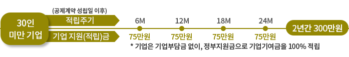 30인 미만 중소기업의 경우 원래 기업부담금이 300만원인데, 정부지원금으로 이 금액도 지원하죠.