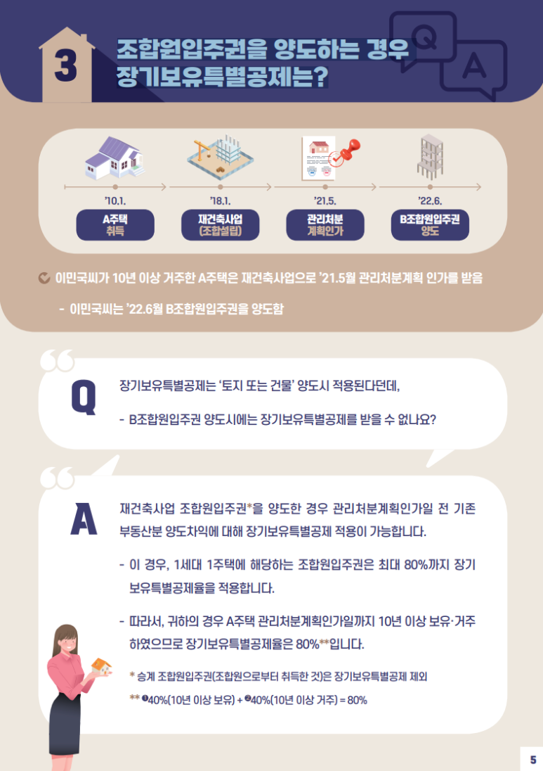 재건축사업 조합원입주권을 양도한 경우 관리처분계획인가일 전 기존 부동산분 양도차익에 대해 장기보유특별공제 적용이 가능합니다