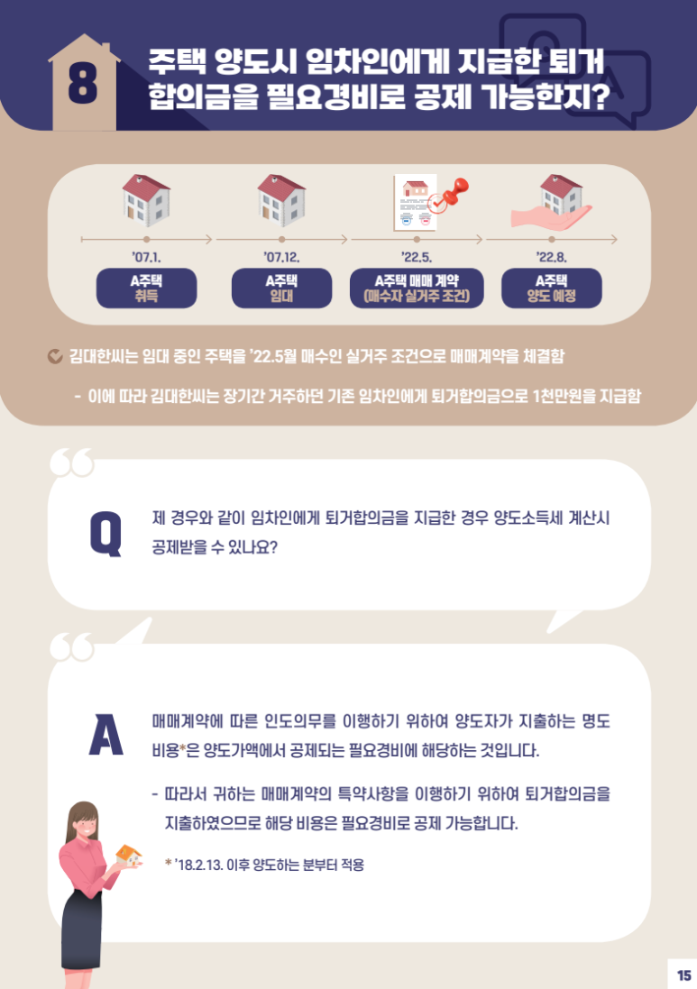 매매계약에 따른 인도의무를 이행하기 위해 양도자가 지출하는 명도비용은 「소득세법 시행령」 제163조제5항제1호라목에 따라 양도가액에서 공제되는 필요경비에 해당 합니다.