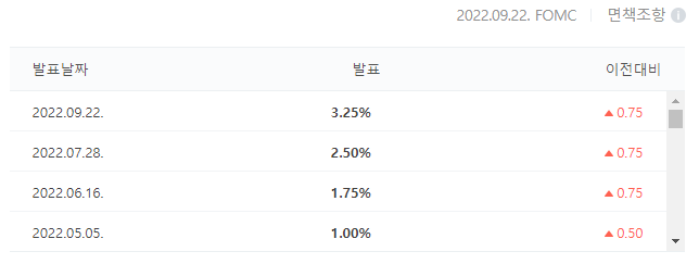 지금 미국은 기준금리를 0.75%씩 3달이나 올리는 초강수를 써서 3.25%까지 올랐습니다.