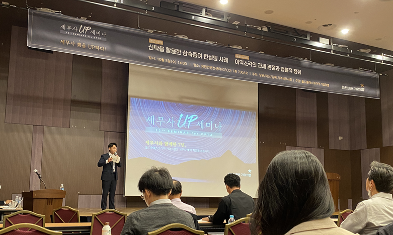 "신탁"을 통해 절세가 가능한지, 아니면 통제가 가능한 증여를 할 수 있는지 등에 대한 주제가 하나가 있었고