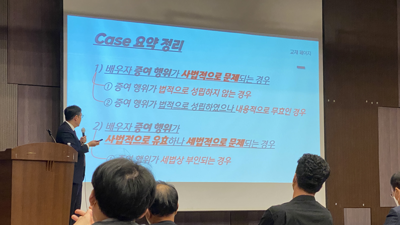 "이익소각"이슈에서 최근 배우자의 이익소각에 대해서 세무관청에서 예의주시하고, 어떻게 과세판정을 내리는 지에 대한 이야기들을 들을 수 있었습니다.
