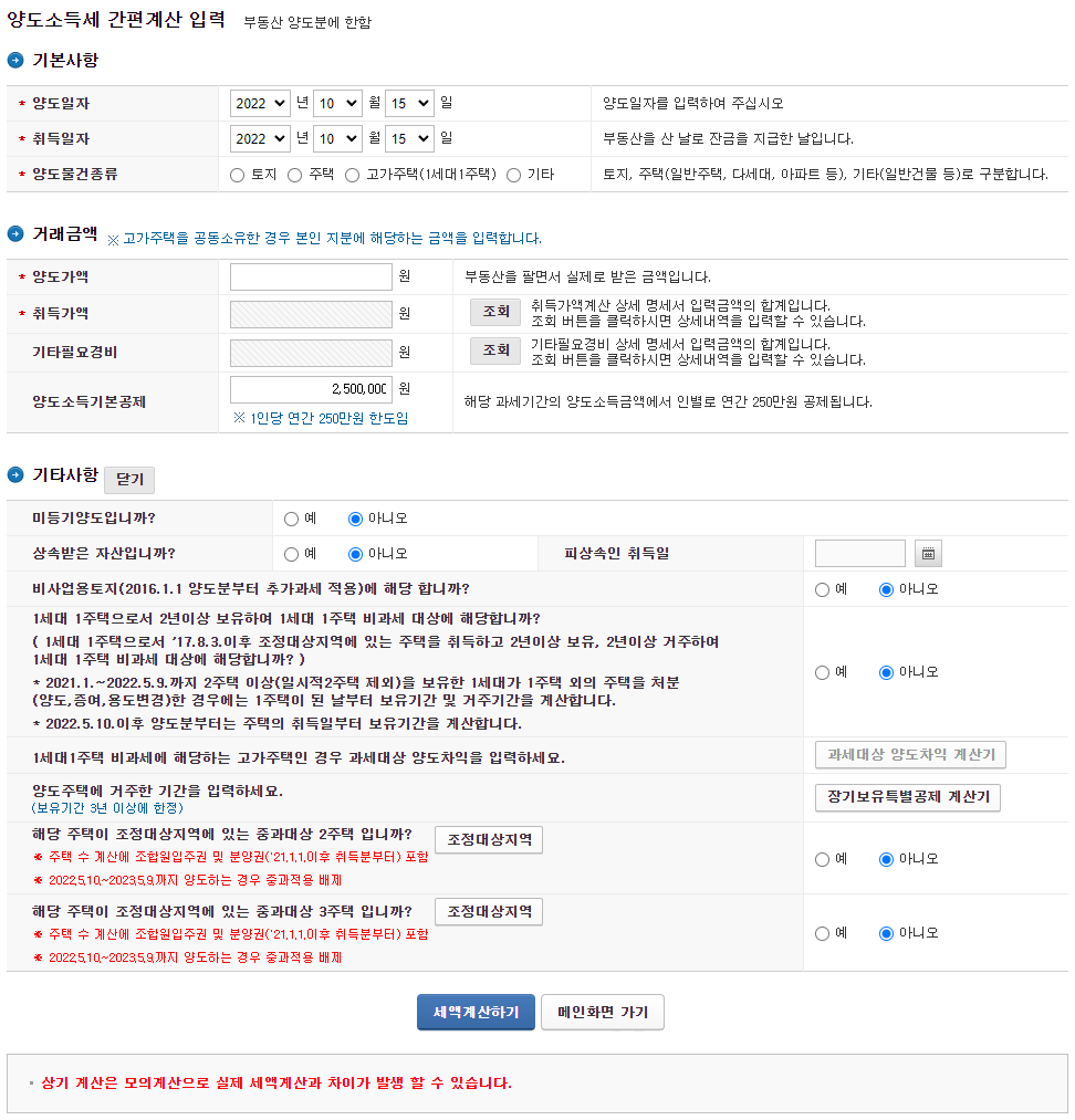 본인이 양도한 부동산에 대해서 정확한 계산은 아니지만, 어느정도의 세금이 나올 것인지를 예상하게 해주는 꿀팁같은 기능이라서 여러분들도 아시면 좋지않을까 합니다.